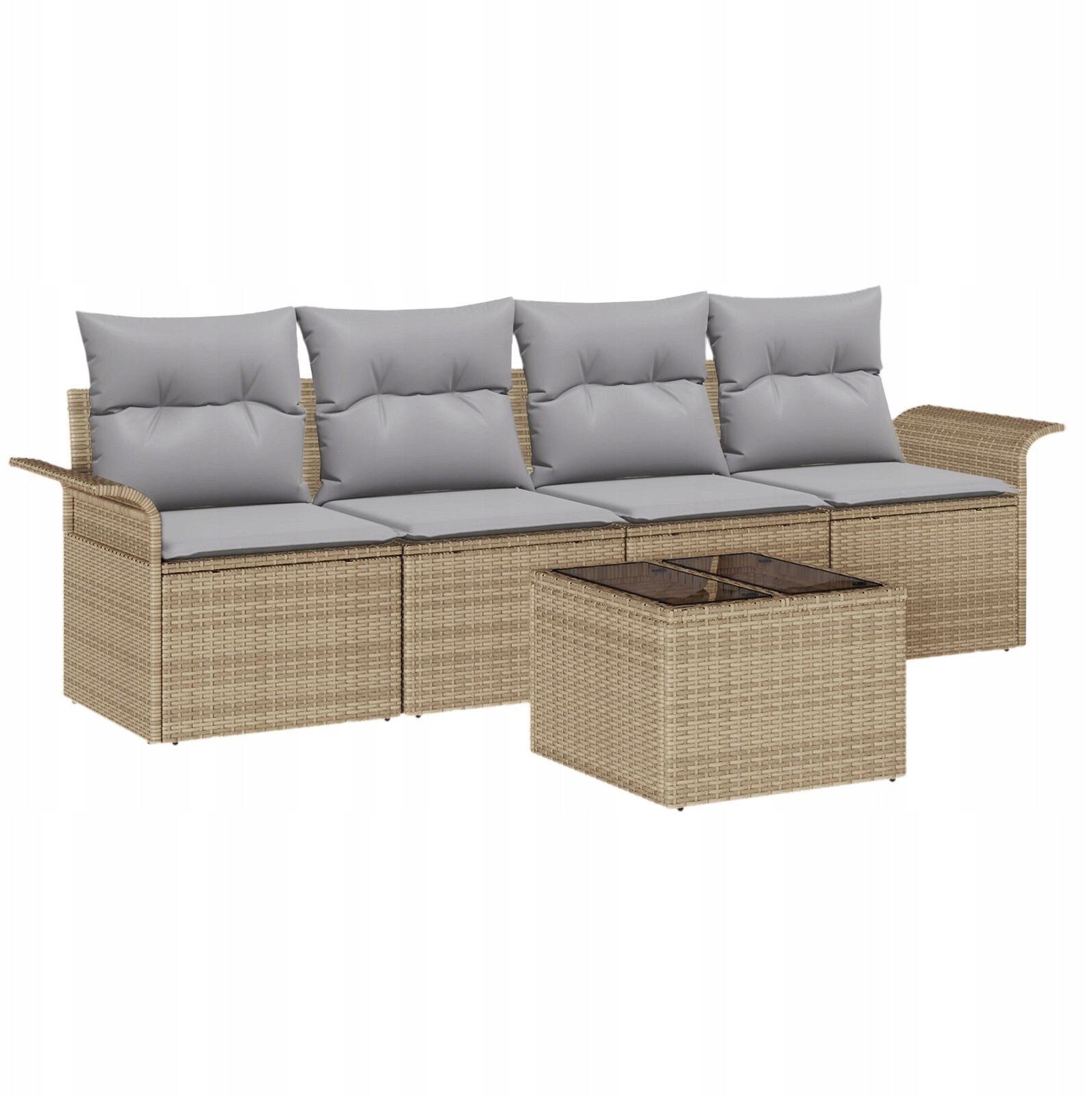 vidaXL Zestaw Sofy Ogrodowej 5 Czci z Poduszkami Beowy Polirattan, Sofa Ogrodowa dla 2 Osób z Przechowalni i Poduszkami Beowy Polirattan