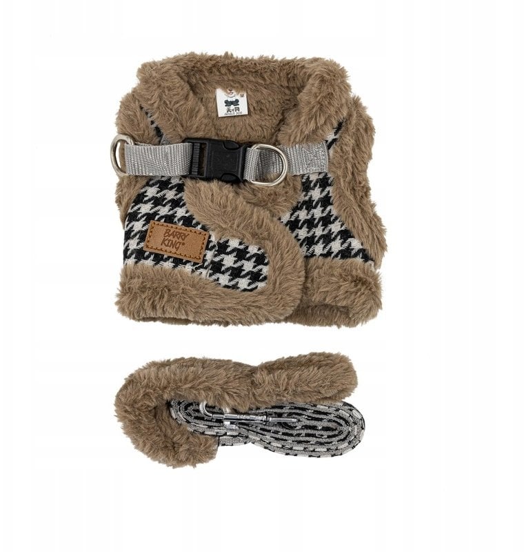 Zestaw, szelki+smycz, dla psa, brzowy, poliester/bawena, rozmiar L, ocieplane
