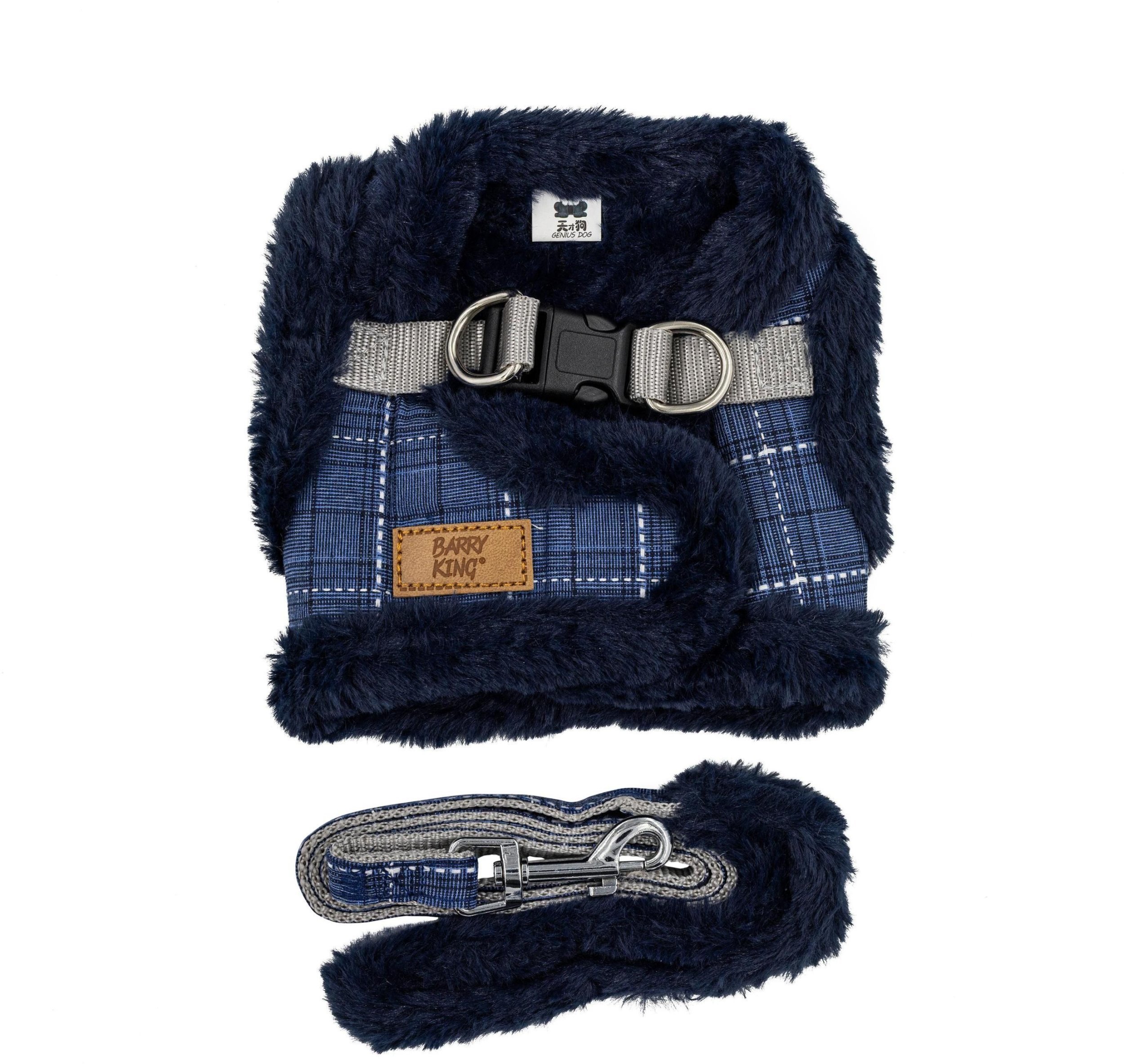 Zestaw, szelki+smycz, dla psa, granatowy, poliester/bawena, rozmiar L, ocieplane