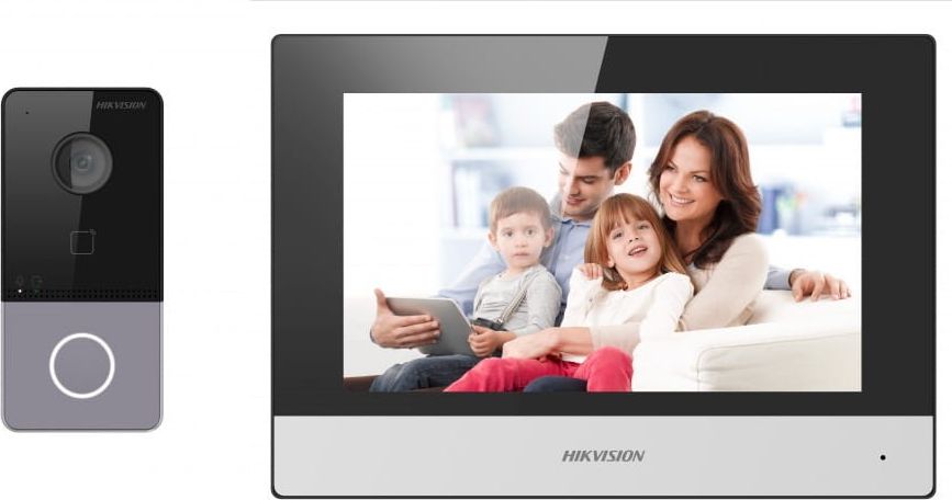 Hikvision Zestaw wideo domofonu DS-KIS603-P(B) IP dla willi lub domu, Stacja bramowa: DS-KV6113-WPE1 x1, Monitor: DS-KH6320-WTE1 x1, Zasilacz