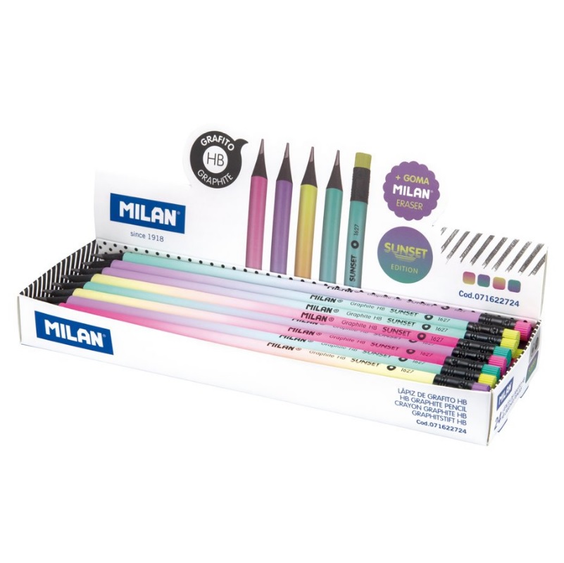 Карандаш MILAN HB Sunset с ластиком — стильный и универсальный инструмент для письма и лёгких набросков. Грифель средней твёрдости HB обеспечивает чёткие линии, легко затачивается и устойчив к поломкам. Встроенный ластик позволяет быстро исправить ошибки.