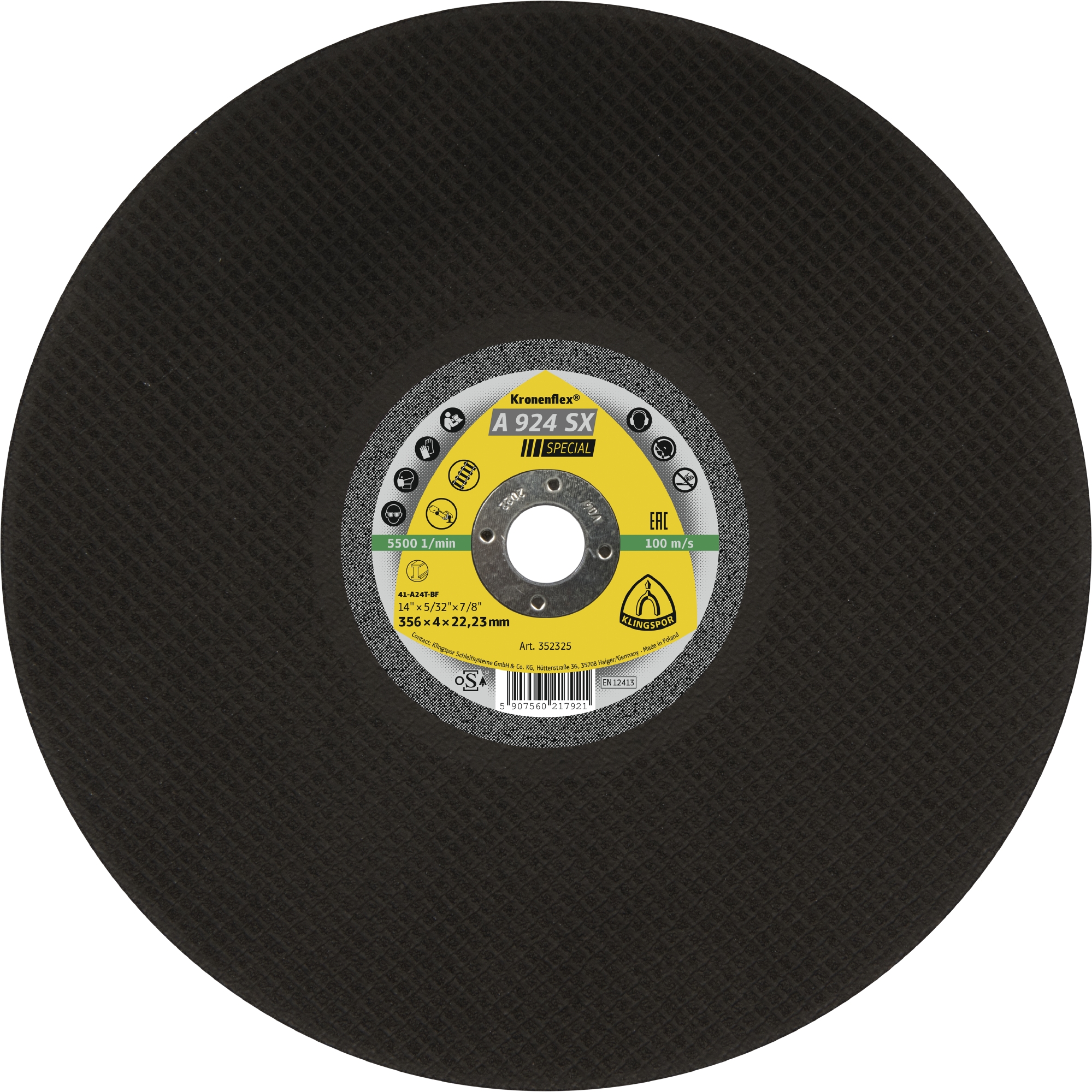 Abrazīvais griešanas disks Klingspor A 924 SX SPECIAL; 356x4x25,4 mm; 10 gab.