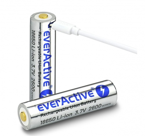 Akumulators 18650 3.7V litija 2600 mAh korpusā lādējams mikroUSB-B iep.1 gb. kastītē ar vadu