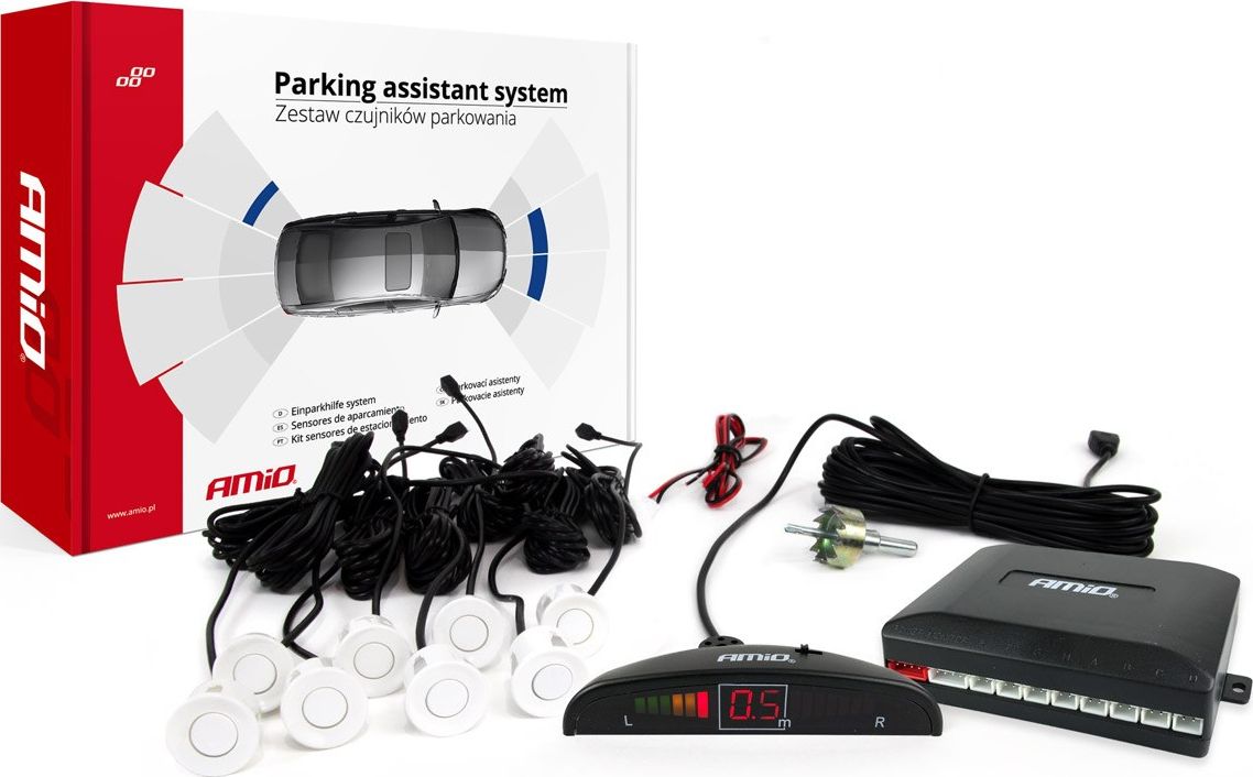 AMiO Zestaw czujników parkowania cofania led 8 sensorów biae