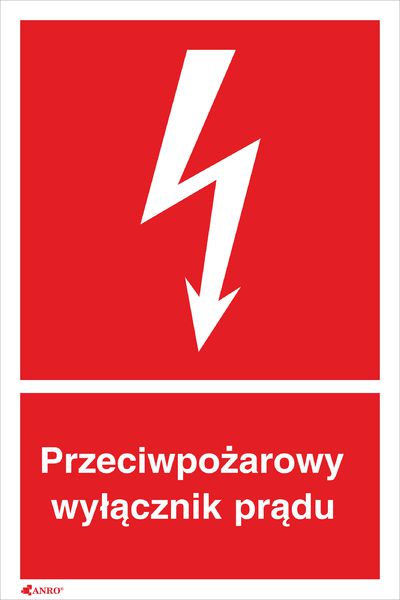 ANRO Tabliczka Przeciwpoarowy wycznik prdu 150 x 205mm (31P/F1/FS)