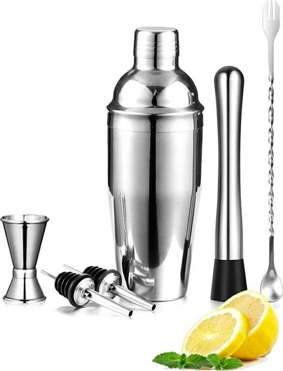 Apte ZESTAW BARMANA 6 elementów Shaker jJigger Miarka srebrny AG818