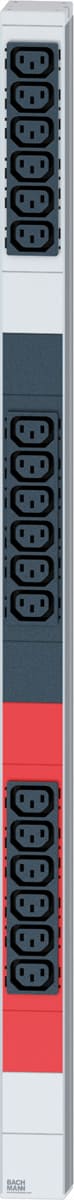 Vertical IT PDU for space-saving and modularly expandable integration into the server rackFor future-oriented, highly effi cient power distribution in data centres, server racks and network racks. - The dimensions of the high-quality and very sturdy aluminium profile are a compact 44 x 47 mm. - The space-saving design therefore offers space for data cabling and air routing for air conditioning the server rack. - Space-saving and modularly expandable integration of the PDU into the server rack - High-quality and very stable aluminium profile - Extremely compact dimensions at 44 x 47 mm. - Locking of the plugs using PVC clip or IEC lock - Colour coding of the phases - Installation height in the cabinet 821mm - 18x C13 cold appliance sockets, lockable - Supply cable: 3.0m H05VV-F 3G2.5mm² - Plug CEE 3L+N+PE 16A, red, 3-phase - Dimensions: 44 x 821 x 47 mm - Including mounting bracket, packed in cardboard box