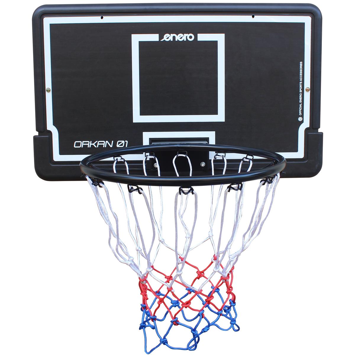Dēļa izmēri aptuveni: 71 x 2 x 45 cm (platums x biezums x augstums) Materiāls: izturīgs un pret laikapstākļiem izturīgs HDPE – dēlis, Dacron 75g – siets, 1 mm tērauds ar diametru 16 mm – stīpa Skrūvju attālums: iekšējais platums 11,1 cm, ārpuse 12,5 cm; iekšējais augstums 4,2, ārējais 5,8 cm Apmales iekšējais diametrs: aptuveni: 39-40 cm Tīkla garums apm.: 50 cm Stīpas biezums aptuveni: 1,6 cm Krāsa: balta, melna Āķu skaits tīklā: 12 Neto svars: 3,2 kg Bruto svars: 3,5 kg Iepakojuma izmēri: 46 x 5-10,5 x 73,5 cm (P x D x A) Komplektā ietilpst: aizmugurējais dēlis, tīkls, stīpa, 3 tapas komplekts ar skrūvēm aizmugurējā paneļa piestiprināšanai, 4 skrūves stīpas pieskrūvēšanai Paredzētais pielietojums: atpūtas basketbola spēle telpās un ārā Preču zīme: Enero
