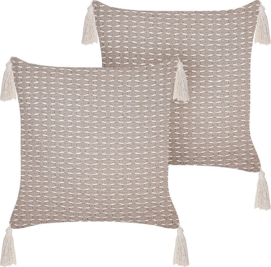 Beliani 2 poduszki dekoracyjne geometryczny wzór z frdzlami 42 x 42 cm beowoszare HAKONE