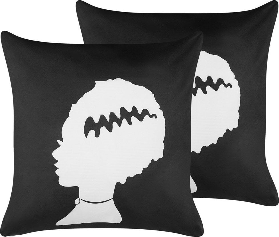 Beliani 2 Welurowe Poduszki Dekoracyjne Z Motywem W Potwora 45 X 45 Cm Czarne Z Biaym Mandevilla!