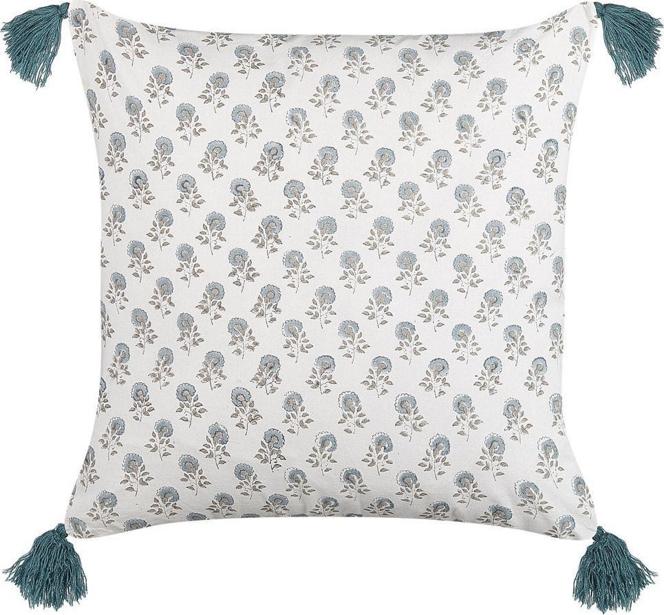 Beliani Baweniana poduszka dekoracyjna w kwiaty z frdzlami 45 x 45 cm biao-niebieska CORNUS!