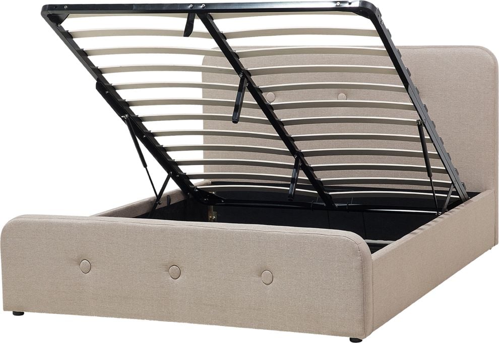 Beliani óko z pojemnikiem tapicerowane 140 x 200 cm beowe RENNES