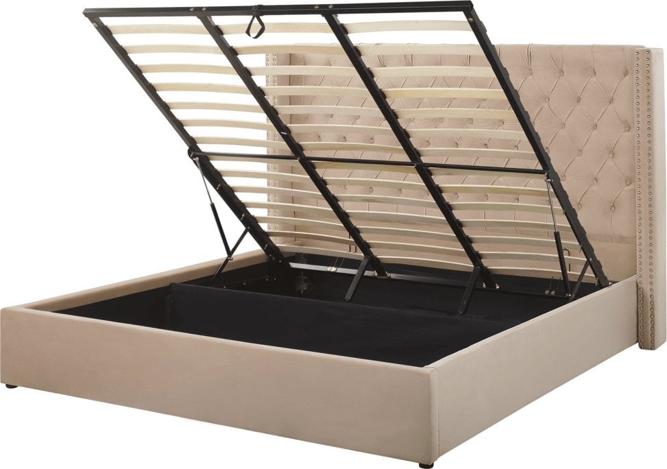 Beliani óko z pojemnikiem welurowe 180 x 200 cm beowe LUBBON