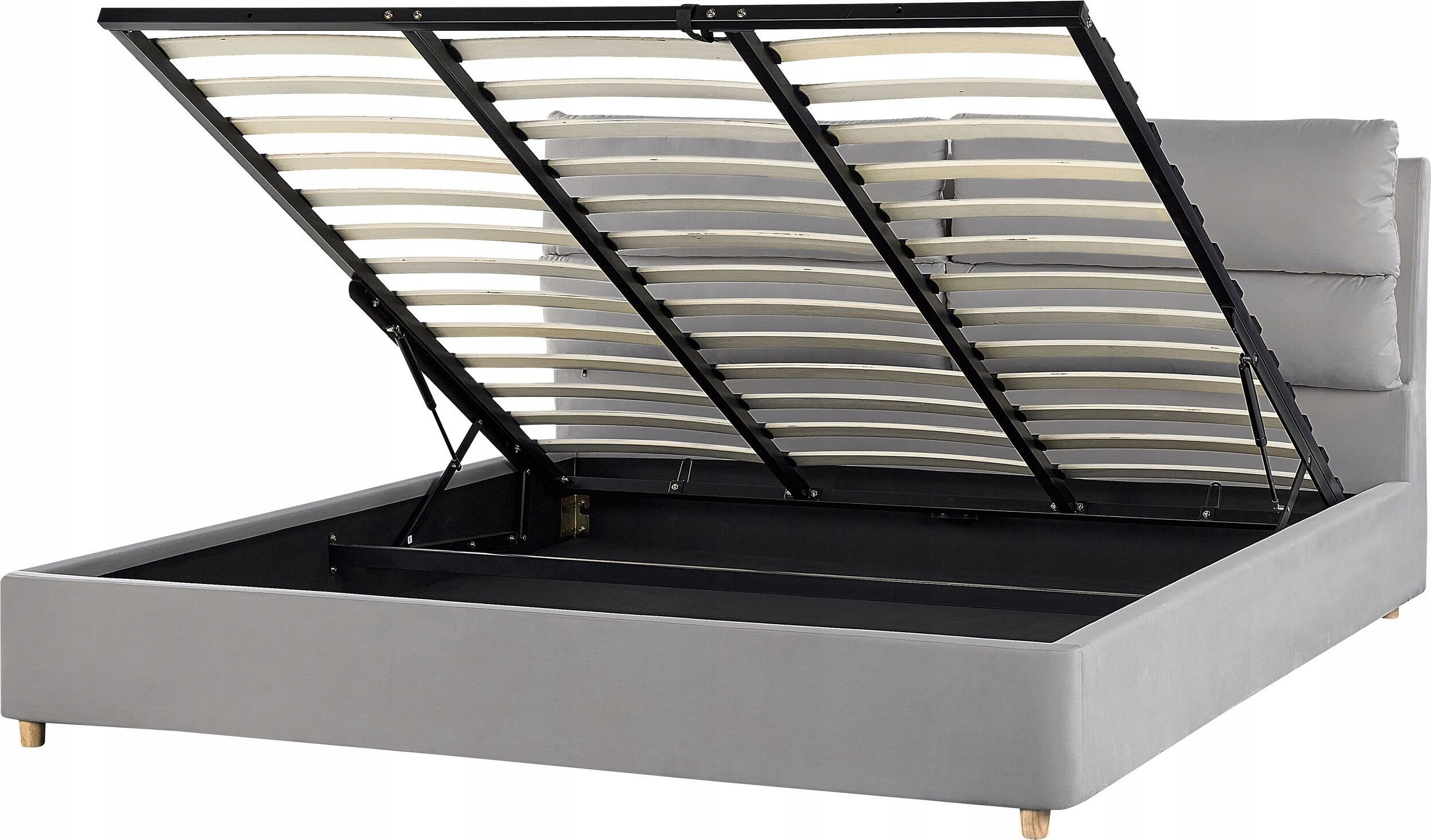 Beliani óko z pojemnikiem welurowe 180 x 200 cm jasnoszare BATILLY