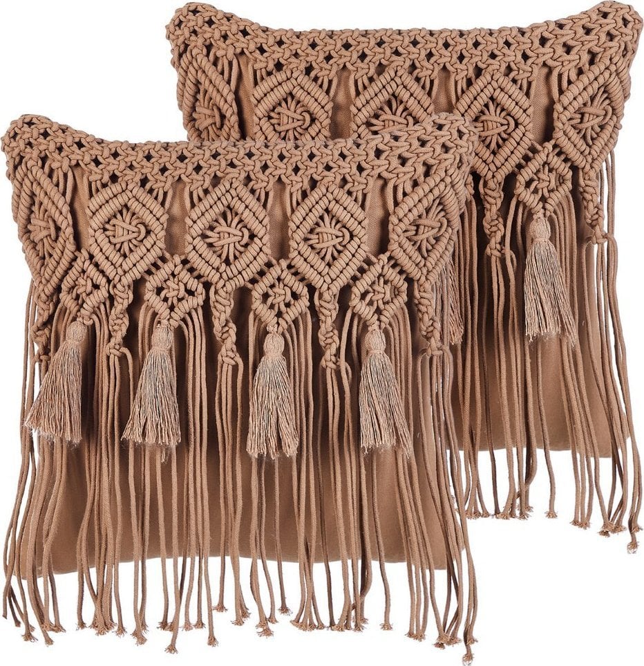 Beliani Zestaw 2 poduszek dekoracyjnych makrama 45 x 45 cm brzowy BAMIAN