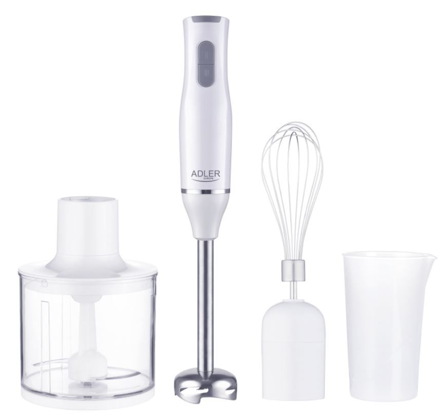 Ierīces tips: Rokas blenderi, Krāsa: Balta, Korpusa materiāls: Plastmasa, Tilpums: 0.75 l, Pudele līdzņemšanai: Nav, Turbo režīms: Nav norādīts, Režīmu skaits: 2, Ledus smalcinātājs: Nav norādīts, Jauda: 800 W, Garantija: 2 gadi