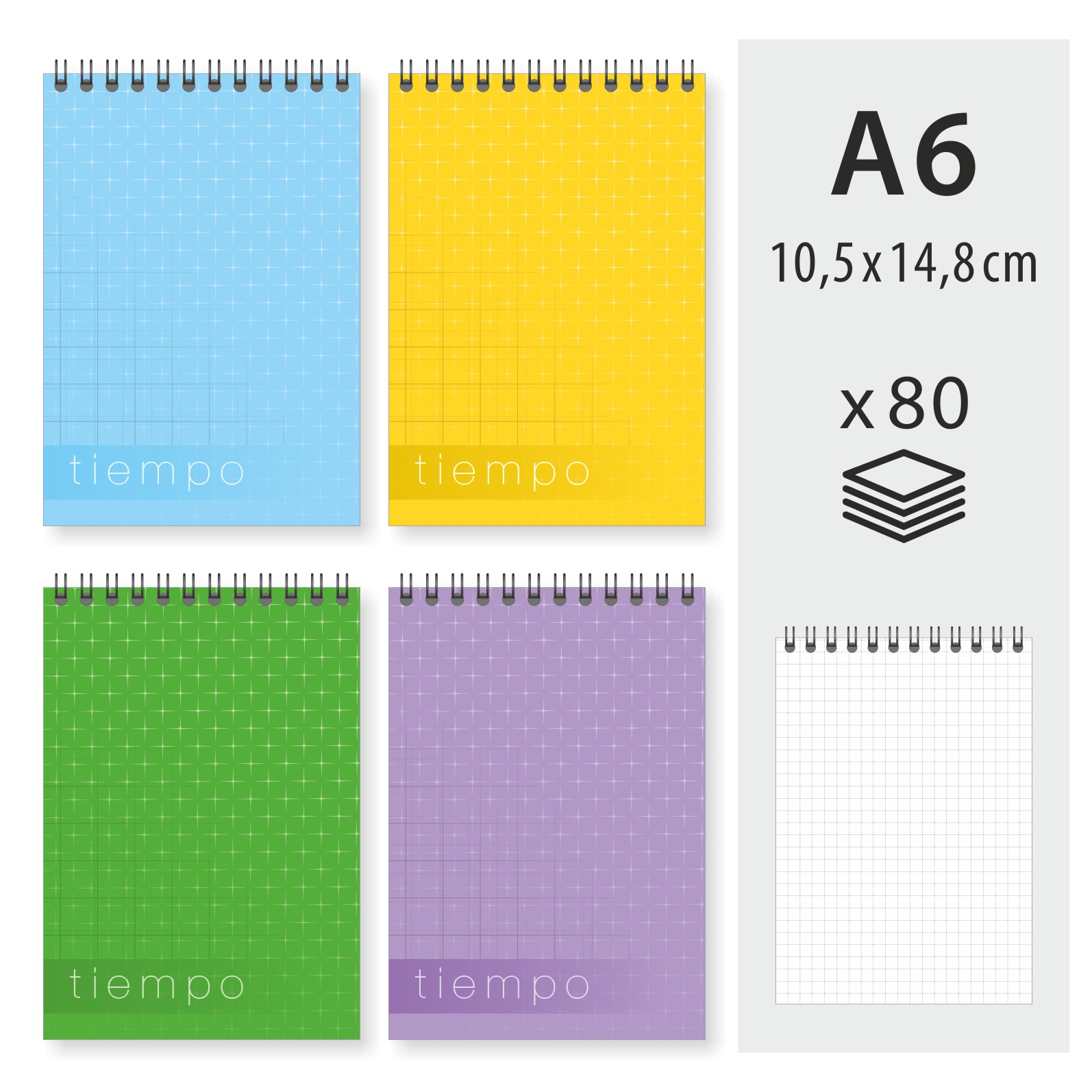 Blociņš ar spirāli augšpusē A6, 80 lapas, rūtiņās