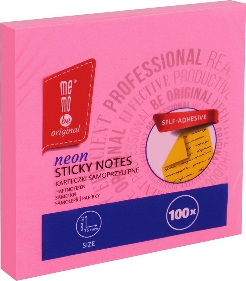 Bloczek samoprzylepny 75x75mm 100K neon MemoBe