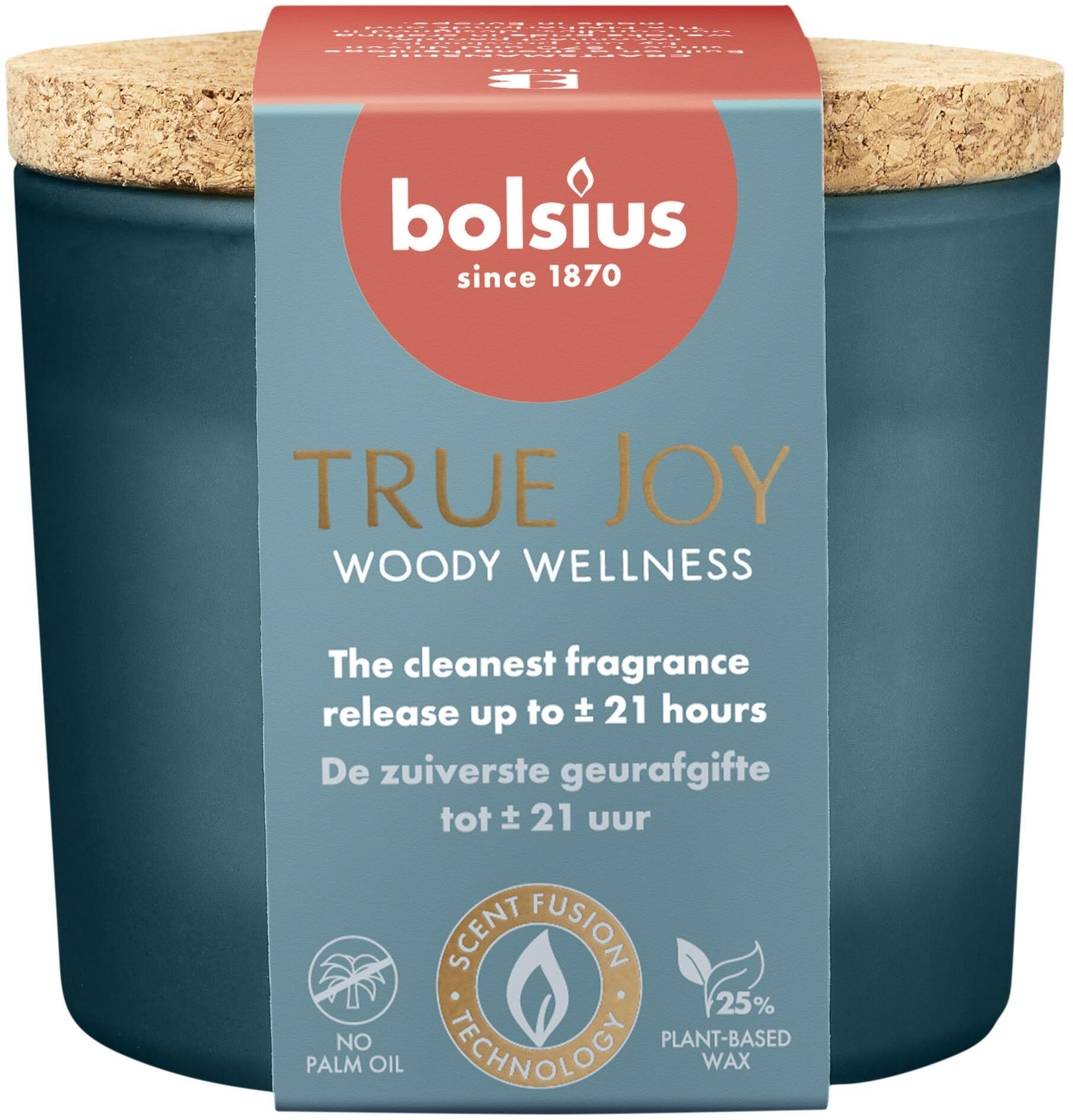 Bolsius wieca arom. szklana gl. z korkiem True Joy O66x83mm woody wellness 8717847198655 8717847198655 (8717847198655)