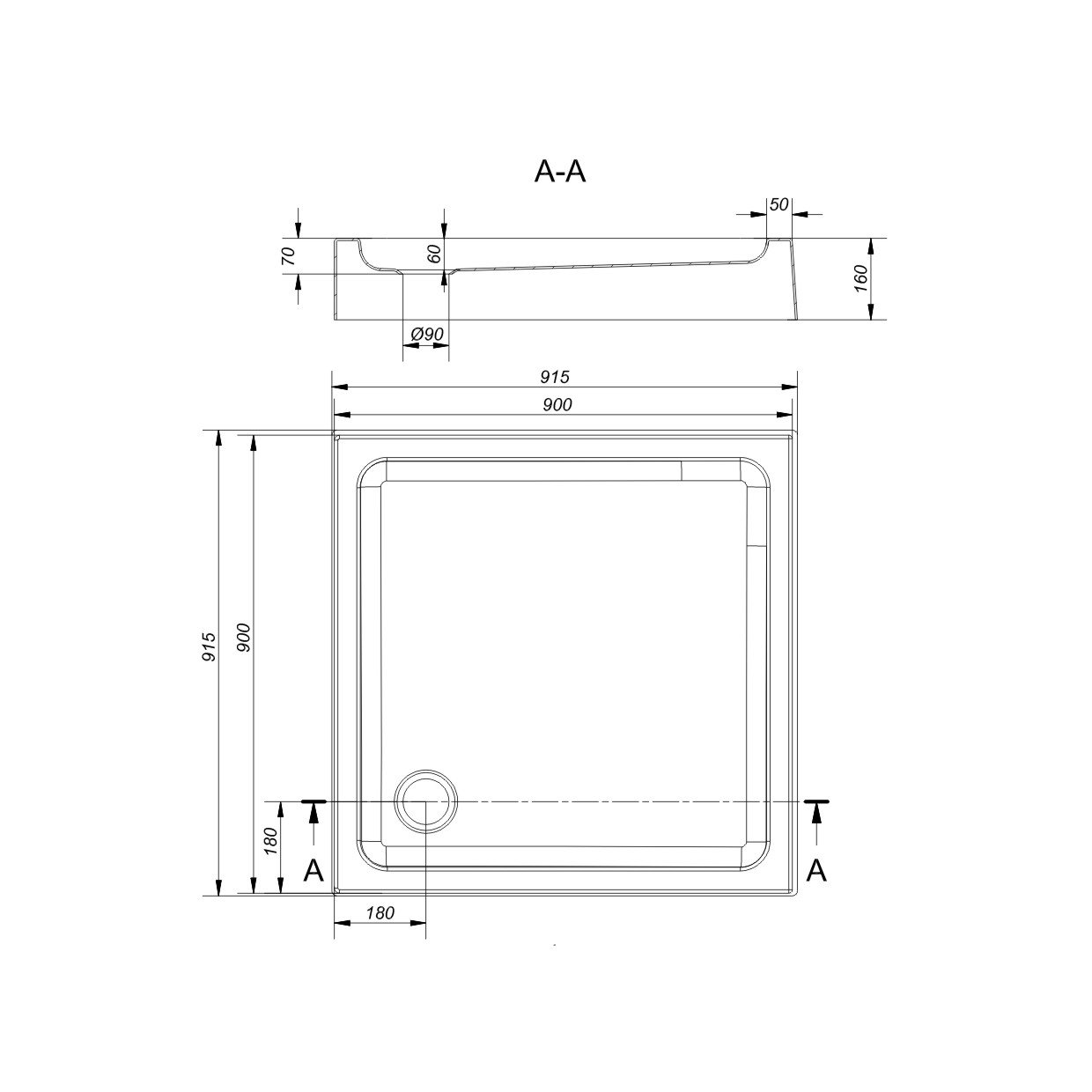 Brodzik Cersanit Tako kwadratowy 90 cm x 90 cm (S204-012)