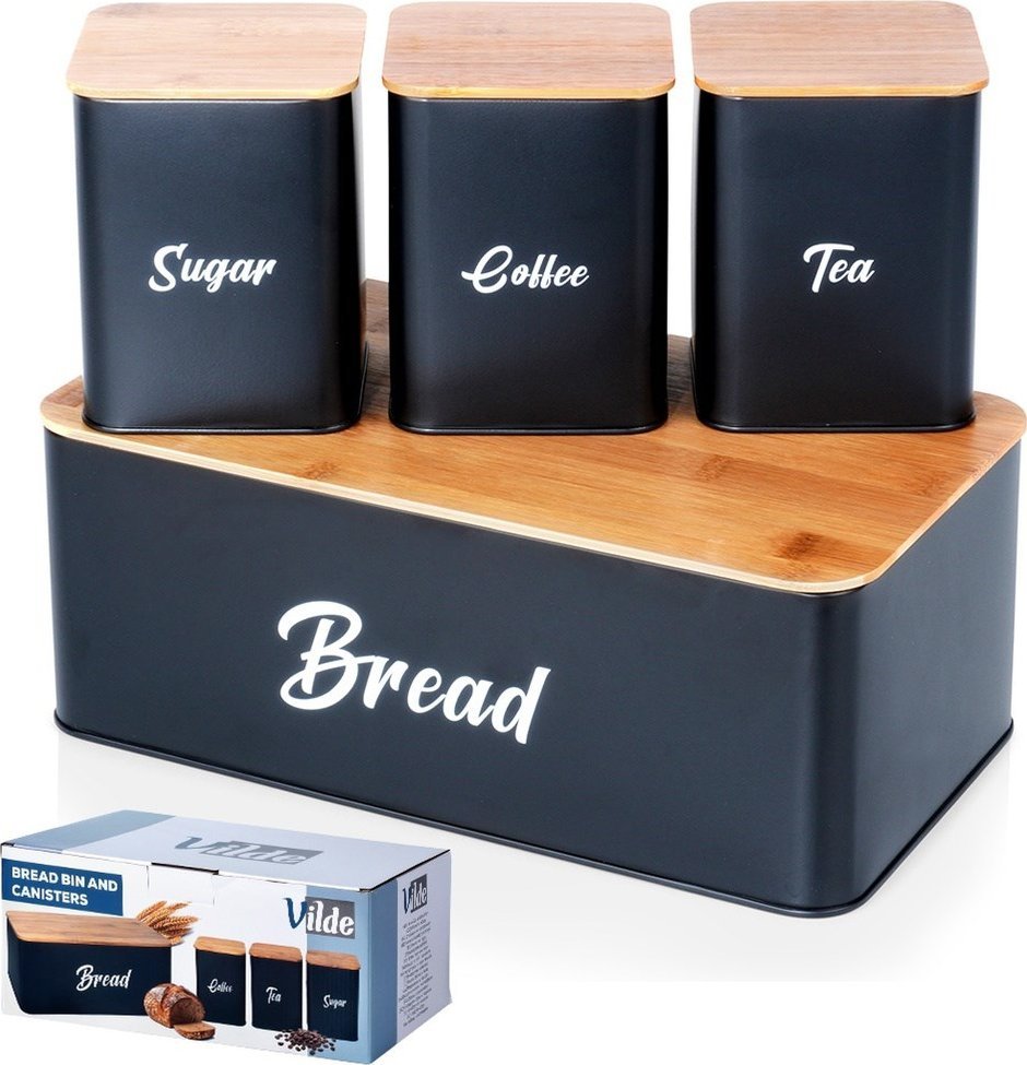 Chlebak Vilde Zestaw Chlebak z Pojemnikami Desk Metalowy Bambusowy Czarny VILDE 4 el.
