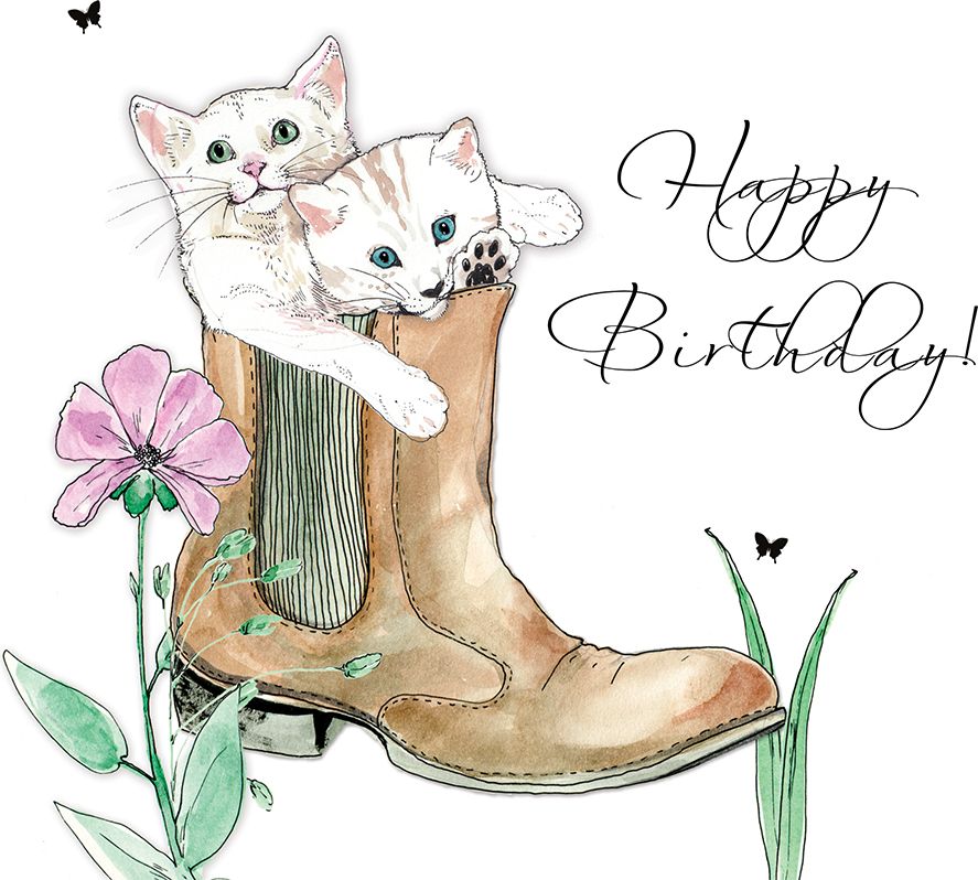 Clear Creation Karnet Swarovski kwadrat Urodziny koty w bucie
