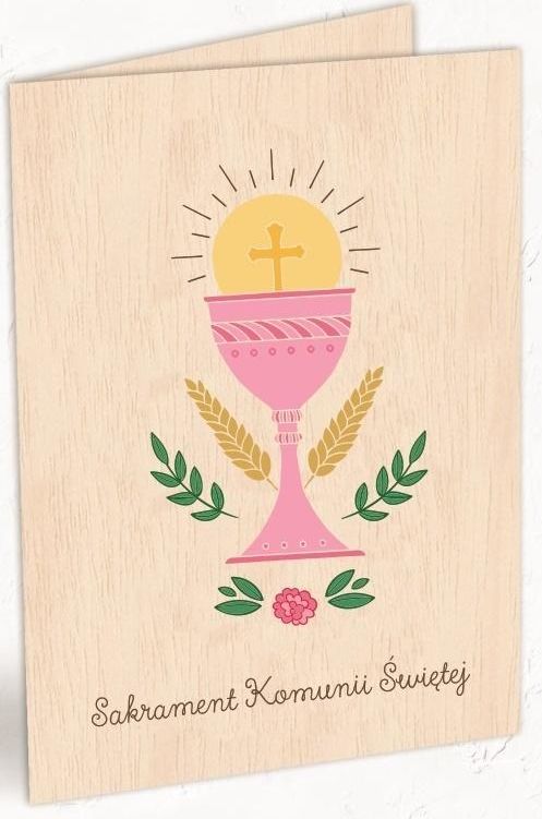 Cozywood Karnet drewniany C6 Komunia kielich ró + koperta