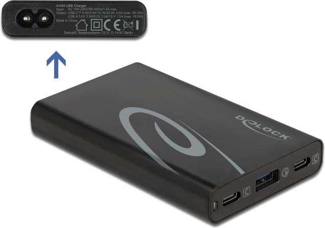 Delock USB Charger 2 x USB Type-C™ PD 3.0 + 1 x USB Type-A with 60 W