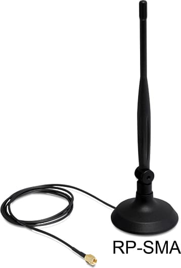 Delock WLAN 802.11 b/g/n Antenna RP-SMA 4 dBi Omnidirectional Flexible Joint With Magnetic Stand