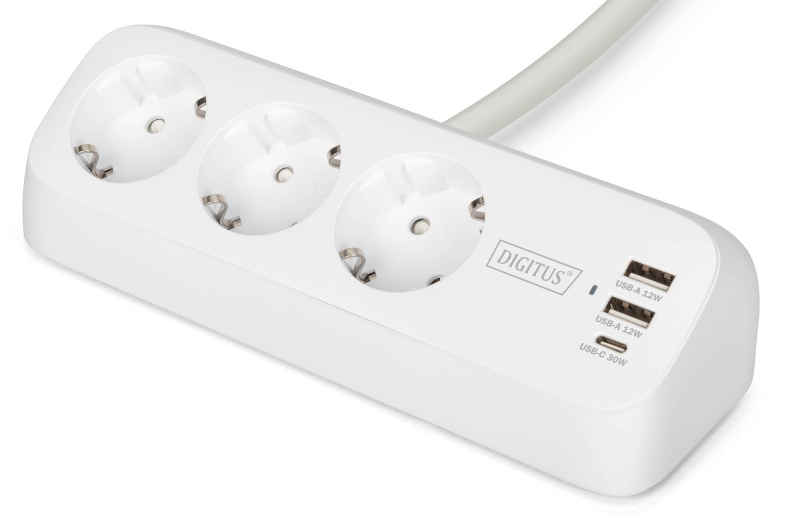 Digitus 3-way office socket strip with 2x USB-A and 1x USB-C connections, white