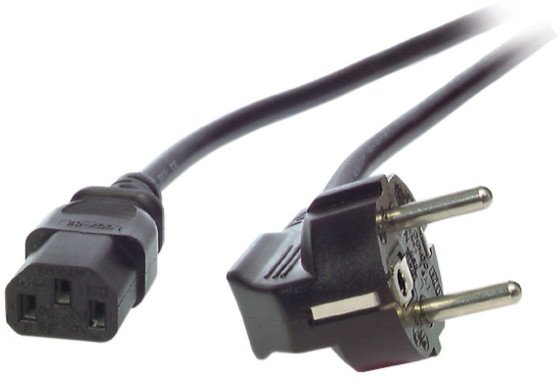 EFB Netzleitung Netzkabel Schutzkontakt 90Grad auf C13 180Grad 2 Meter Schwarz 3x0.75mm