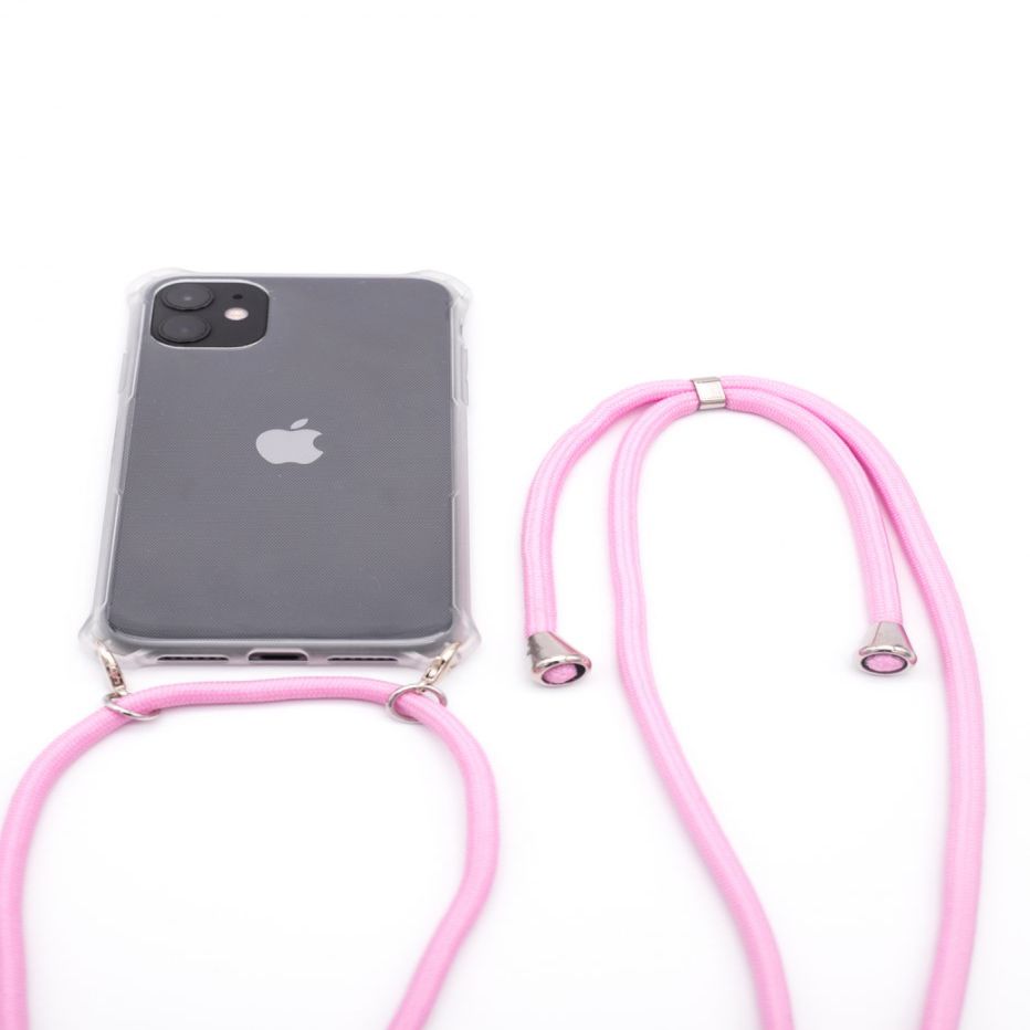 Evelatus Apple iPhone 11 Silicone Transparent with Necklace TPU Strap Transparent Pink