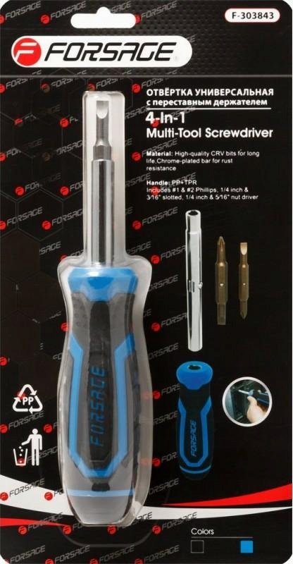 Forsage rubokrt uniwersalny przesuwny z kompletem bitów, L-200mm (PH1, PH2, SL4.5, SL5.5) w blistrze