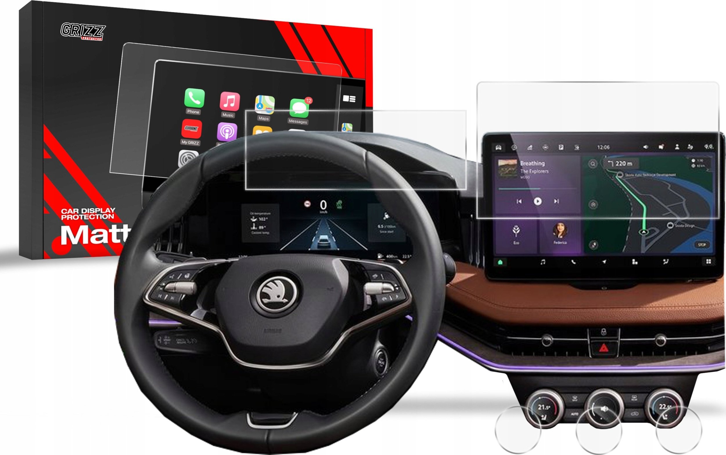 GrizzGlass Folia matowa GrizzGlass CarDisplay Protection do Skoda Superb 4 10" 2024 [5w1]