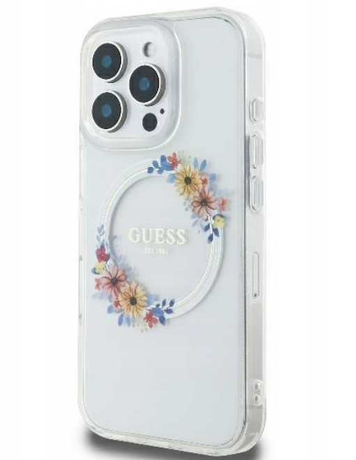 Guess IML Flowers Wreath MagSafe Case for Apple iPhone 16 Pro