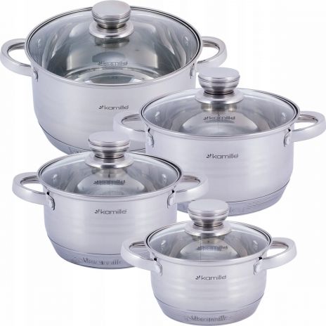 Kamille Zestaw komplet garnków ze stali nierdzewnej 8el.
