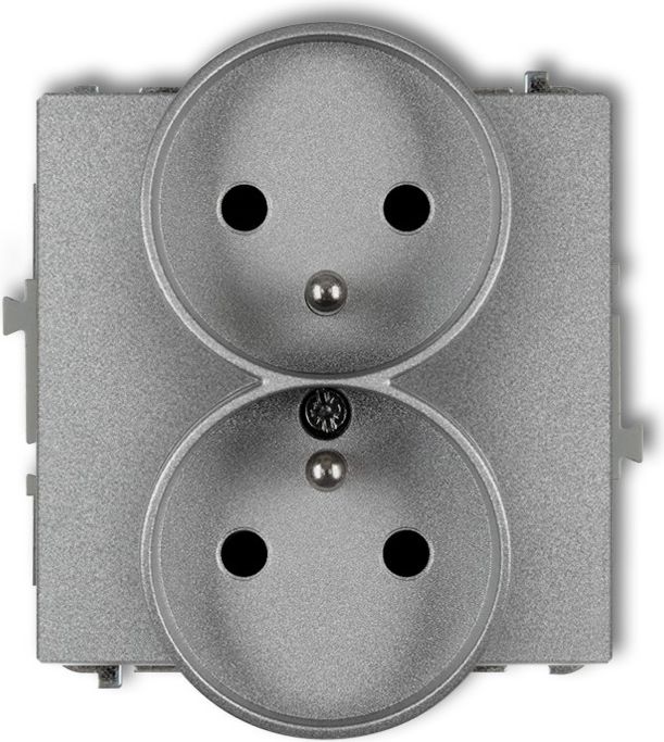 Karlik Gniazdo podwójne DECO Soft z/u do ramki srebrny metalik (7DGPRSO-2z)