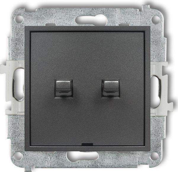Karlik cznik jednobiegunowy ze schodowym Karlik Mini 11MWPUS-10.11 w stylu amerykaskim dwa klawisze bez piktogramów,wspólne zasilanie grafitowy