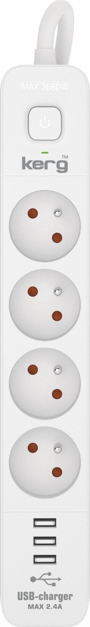 Kerg Urzdz. zas.-zabezpiecz. KERG z wycznikiem-4 gniazda-3USB-biao-szary-5m-16A-H05VV-F-3x1,5mm2