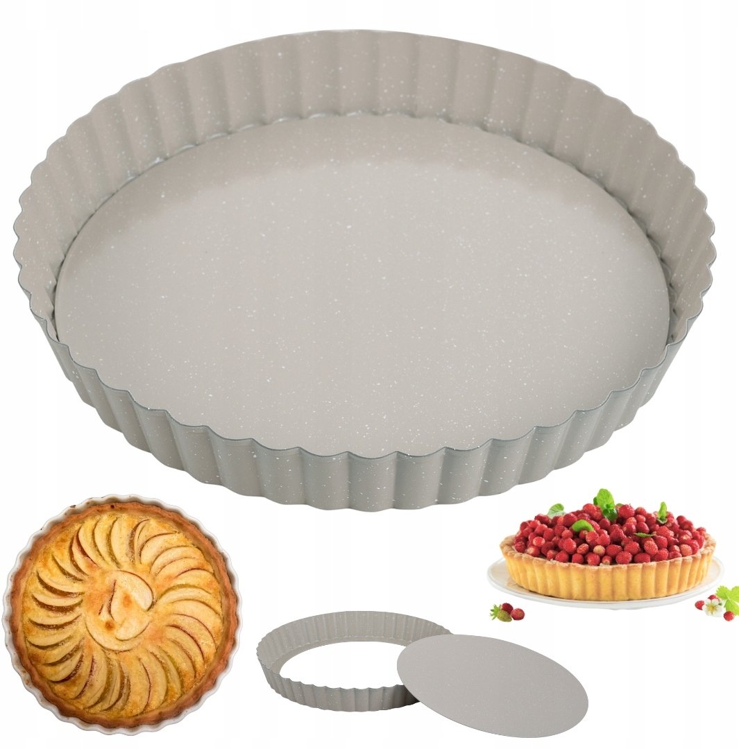 KingHoff Forma do pieczenia tarty z wyjmowanym dnem Ø25 cm, stal wglowa, marmurkowa, beowa, KINGHOFF KH-1969