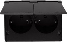 Kontakt-Simon Gniazdo Shucko Kontakt Simon 54 EGSZ2NZB/49 podwójne natynkowe bryzgoszczelne IP44 z przesonami wersja skandynawska 16A, 250V~, zaciski rubowe czarne