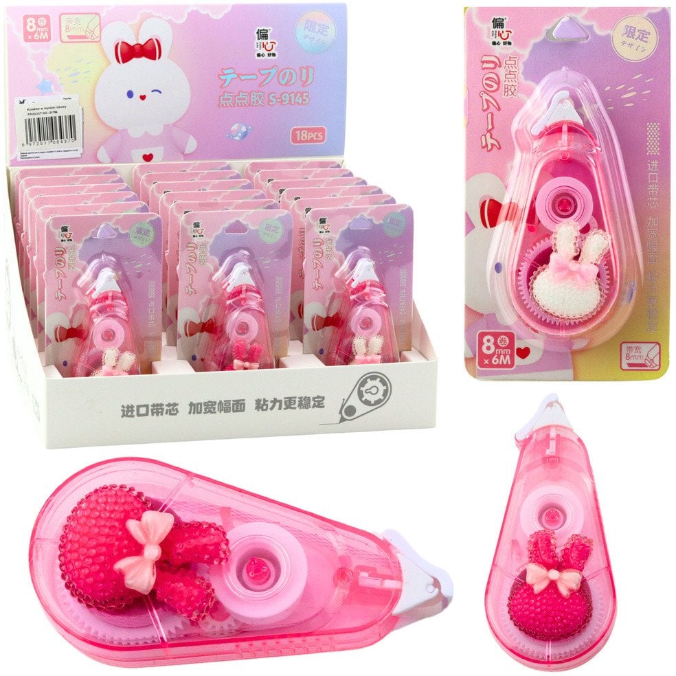 Korektor W Tamie Myszka Szkolny Biurowy Ozdobny Zajczek Róowy 8mm x 6m LEAN