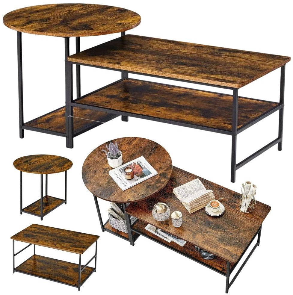 Lean Zestaw Stolików Kawowych 2w1 Vintage Drewno Rustykalne 123x60x51cm
