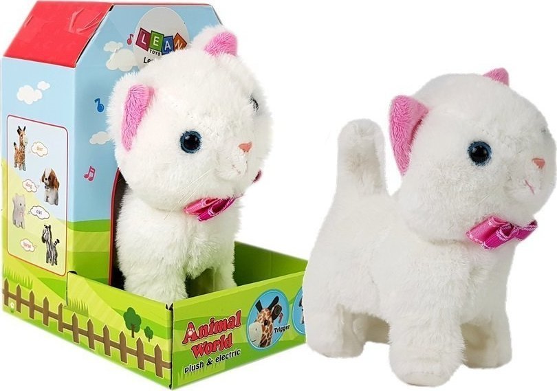LeanToys Interaktywny Kot na Baterie Biay Chodzi i piewa Dwik
