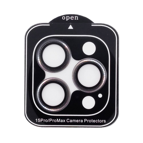 Lens shield with lack frames for Apple iPhone 15 Pro 15 Pro Ma camera lenses. This protective glass is made from tempered glass and reaches 9H according to Mohs. Lens shield is designed to protect phone cameras from mechanical damage, such as ruises or scratches left y sharp ojects. Protective glass with metal frames fully cover the camera lens.rFeatures:9H hardness on the Mohs scale. Tempered glass is a glass sheet, heated close to the melting point and suddenly cooled, its resistance after this procedure ecomes 9 times higher than that of ordinary glass due to the chemical and physical properties of the material and the process itself.rSafe use. Shatter-proof. If roken, this screen protector cracks into small pieces that are held within the film. They are not sharp, making it safer than other glass.rThe use of protective glasses for camera lenses does not affect the photography.rSpecially designed for camera lenses. High transparency of protective tempered glass. Enhanced light penetration rate. Reduced light reflection.rSet includes:Lens shield 3.Screen protector cleaning kit.rCompatiility:Apple iPhone 15 Pro.Apple iPhone 15 Pro Ma.