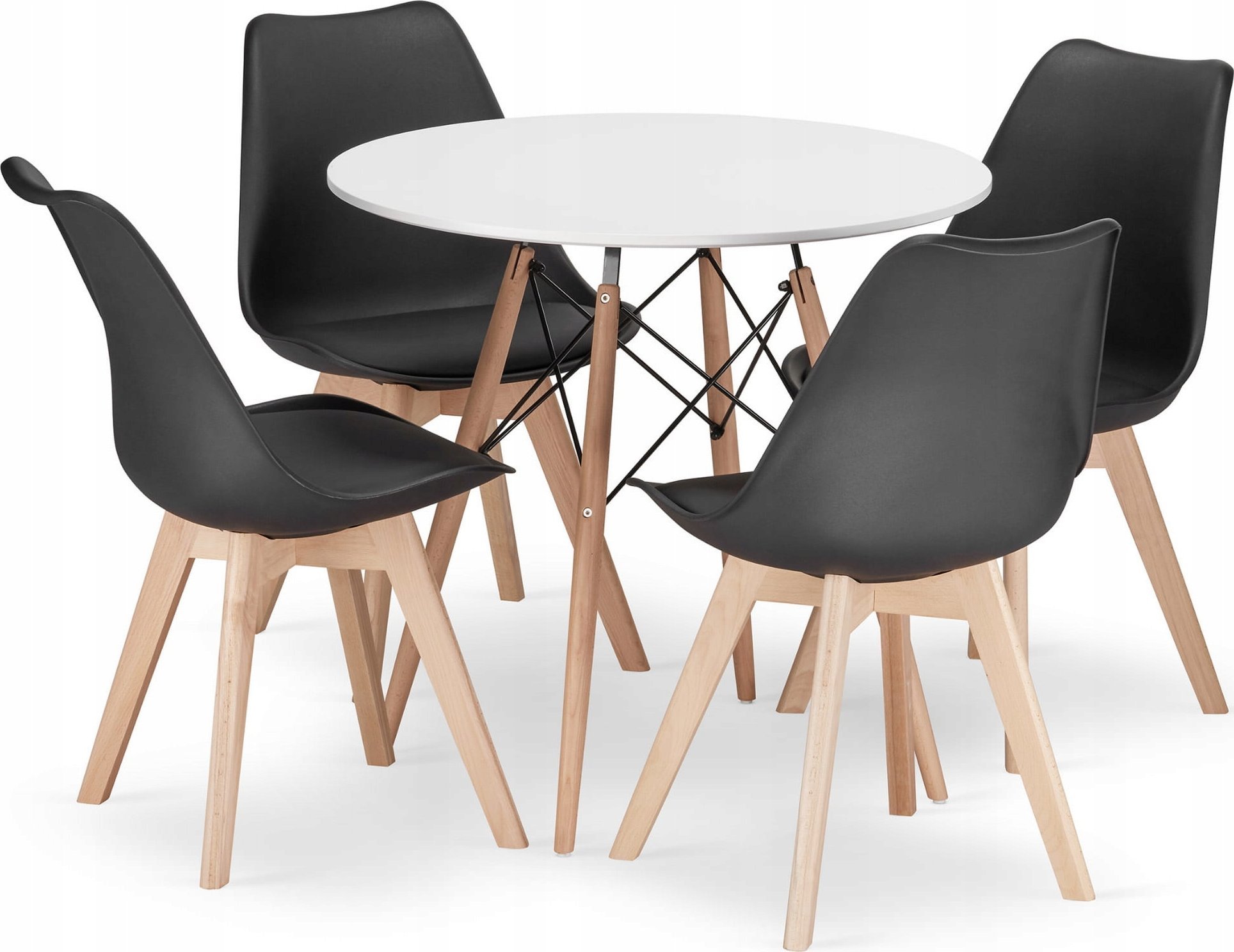 Leobert Zestaw stó okrgy TODI 80cm biay + 4 krzesa MARK czarne