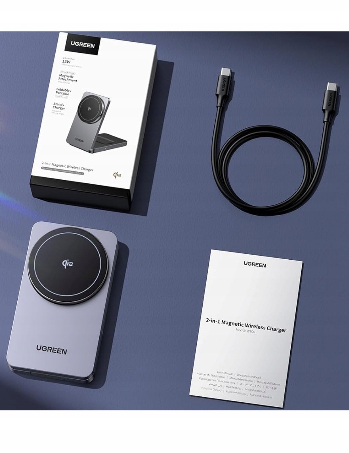 Magnetyczna adowarka bezprzewodowa 2w1 UGREEN W706 MagSafe 15W (czarna)