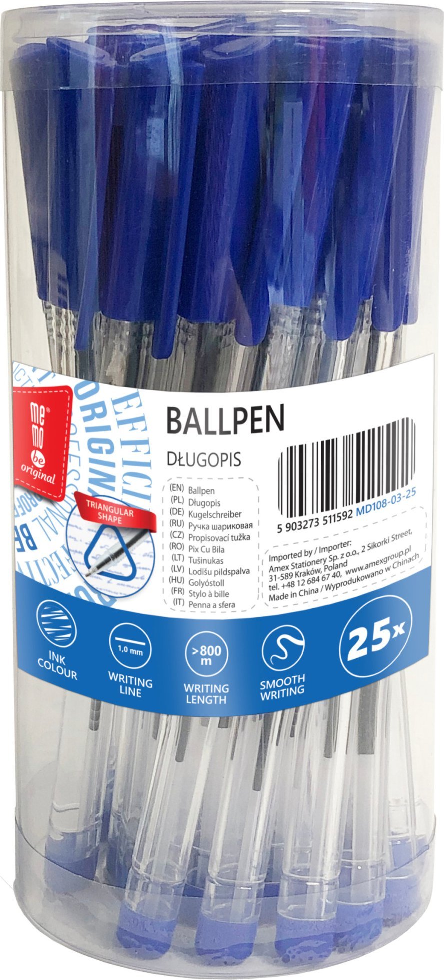 MemoBe Dugopis biurowy niebieski tuba (25szt) MemoBe