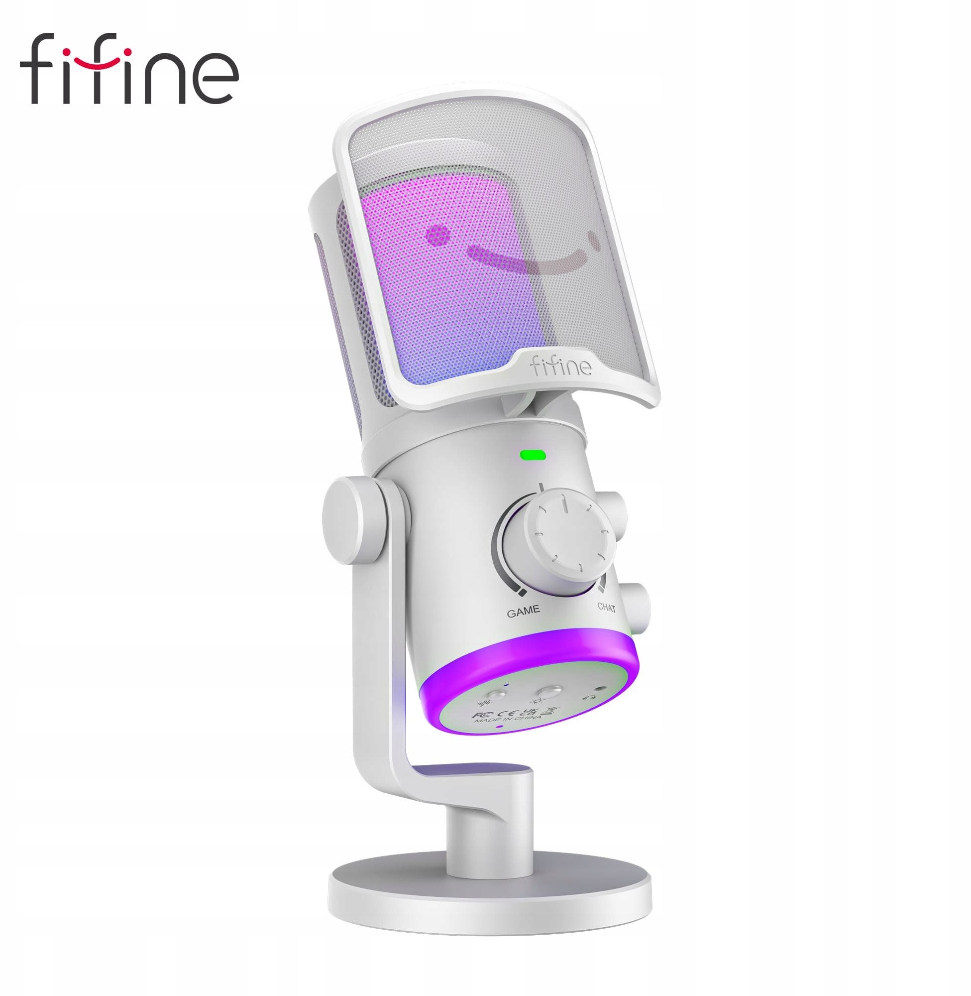 Mikrofon pojemnociowy studyjny FIFINE AM6W z TUMIENIEM SZUMÓW RGB