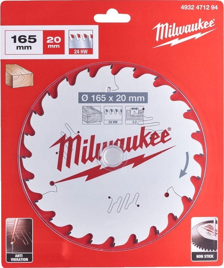 Griešanas disks kokam Milwaukee 4932471294; 165x20x2,2 mm; Z24; 15°
